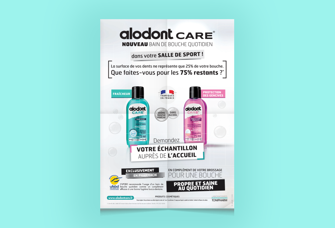 Mission : Carlcom a géré  la Campagne d’échantillonnage nationale, ciblée, des Laboratoires Tonipharm® ! Implantation de la marque et de ses produits Alodont Care® en salle de sport.